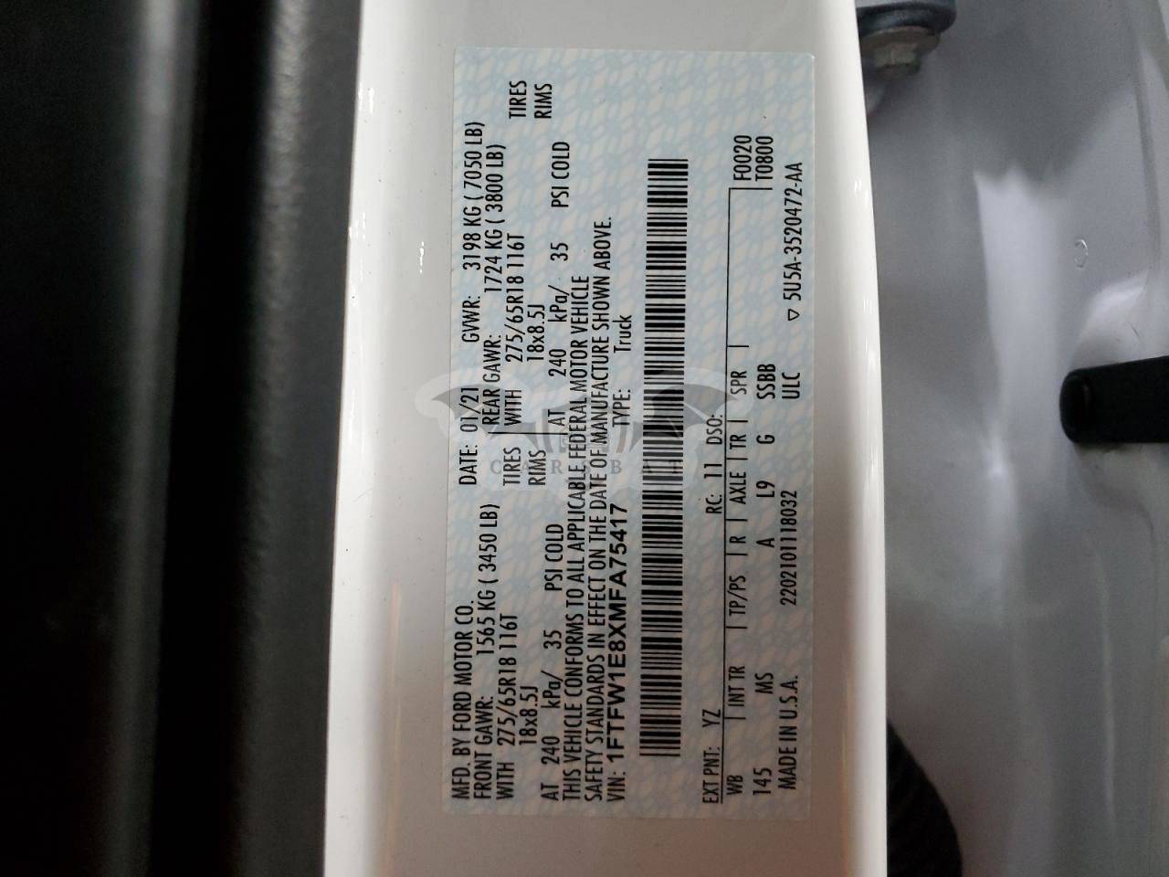 • VIN: 1FTFW1E8XMFA75417