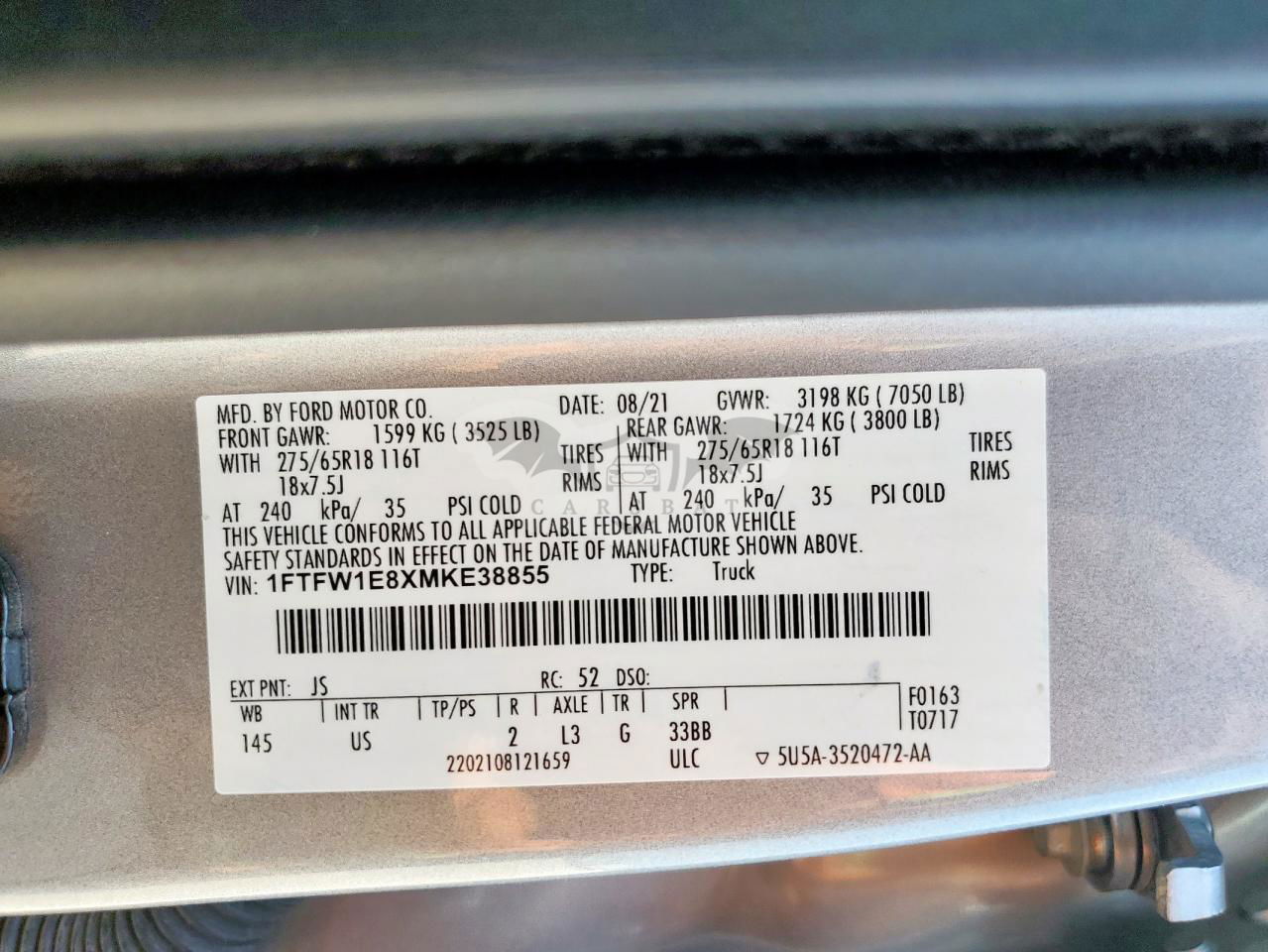 • VIN: 1FTFW1E8XMKE38855