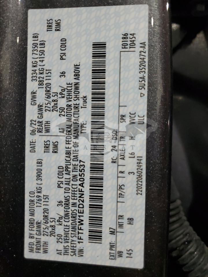 • VIN: 1FTFW1ED2NFA05537