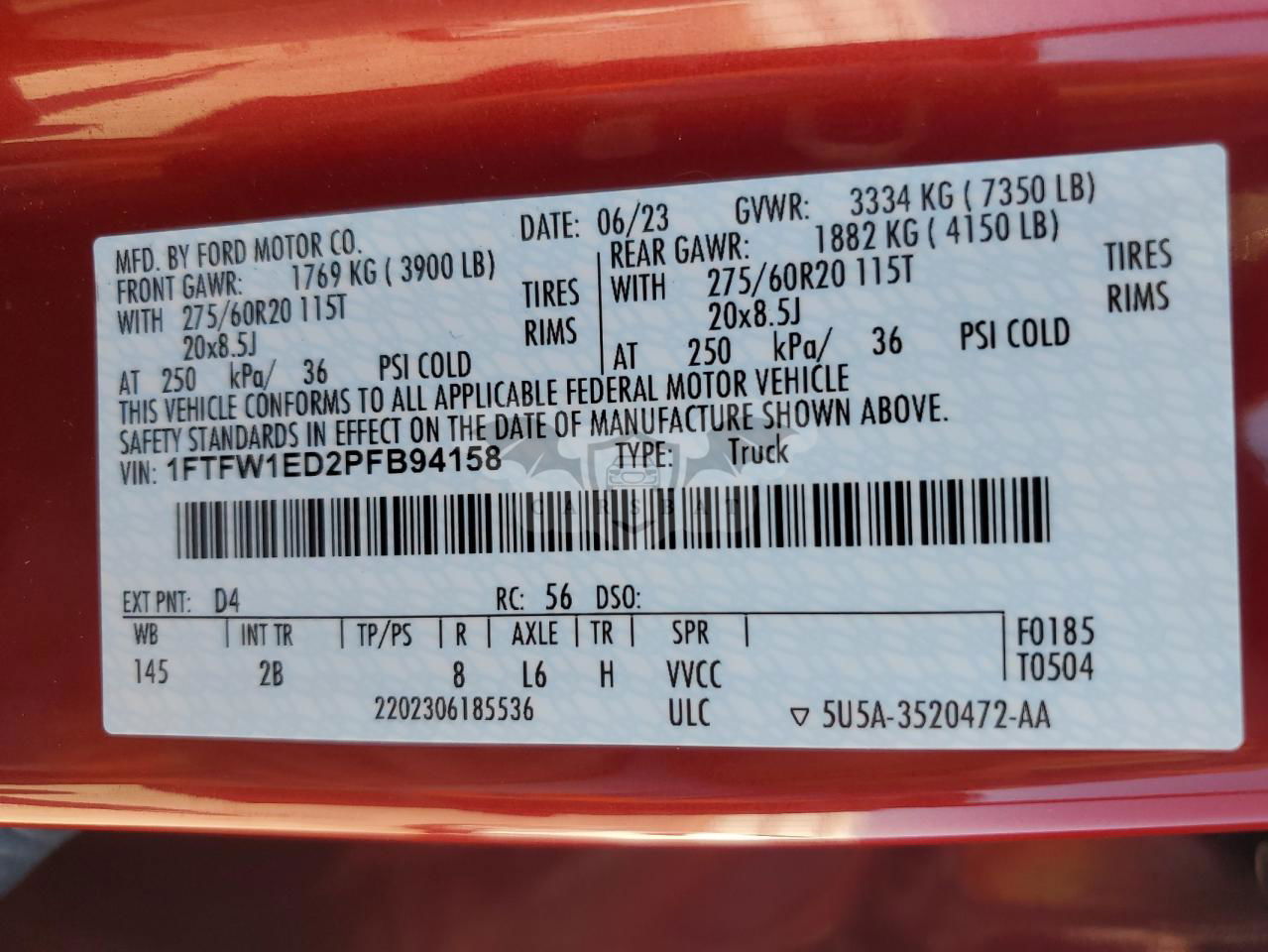 • VIN: 1FTFW1ED2PFB94158
