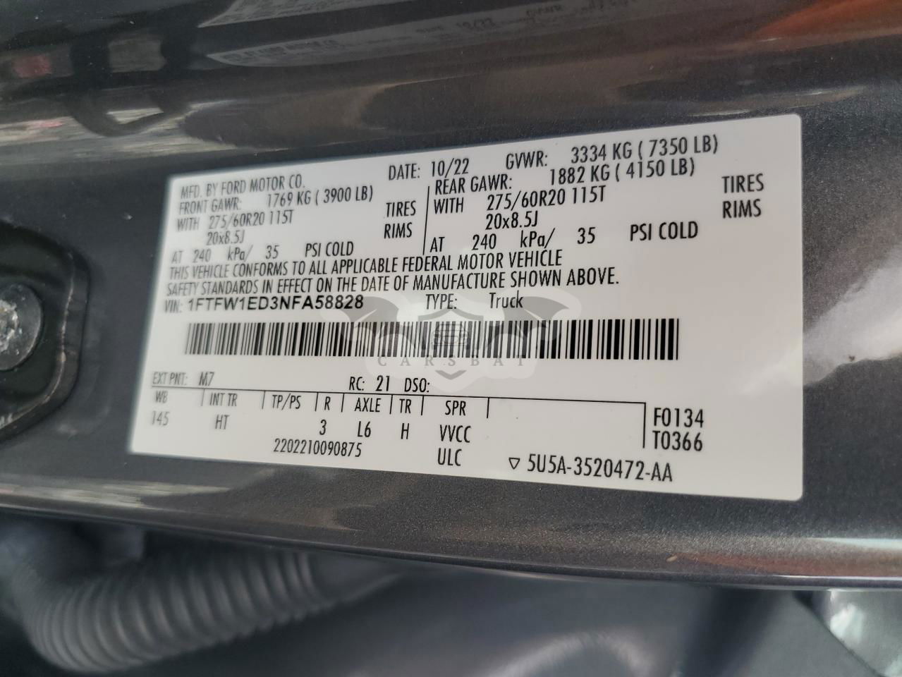 • VIN: 1FTFW1ED3NFA58828