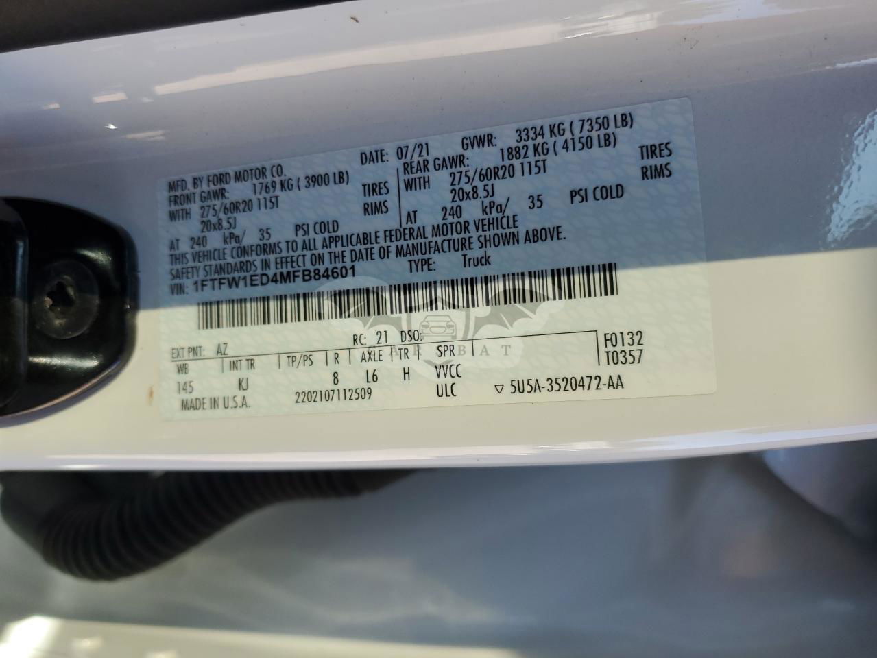 • VIN: 1FTFW1ED4MFB84601