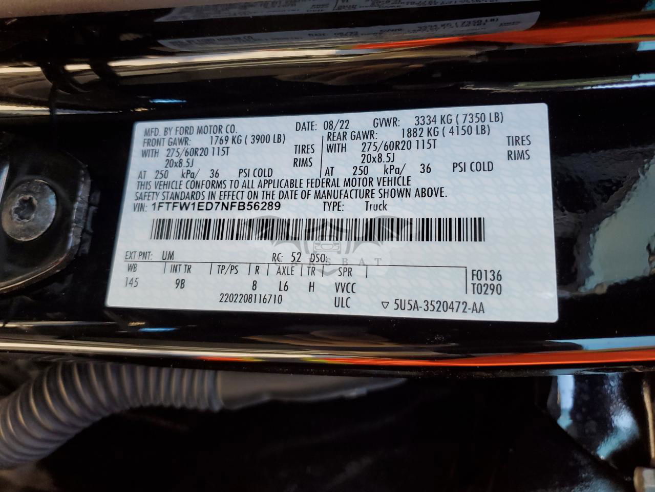 • VIN: 1FTFW1ED7NFB56289