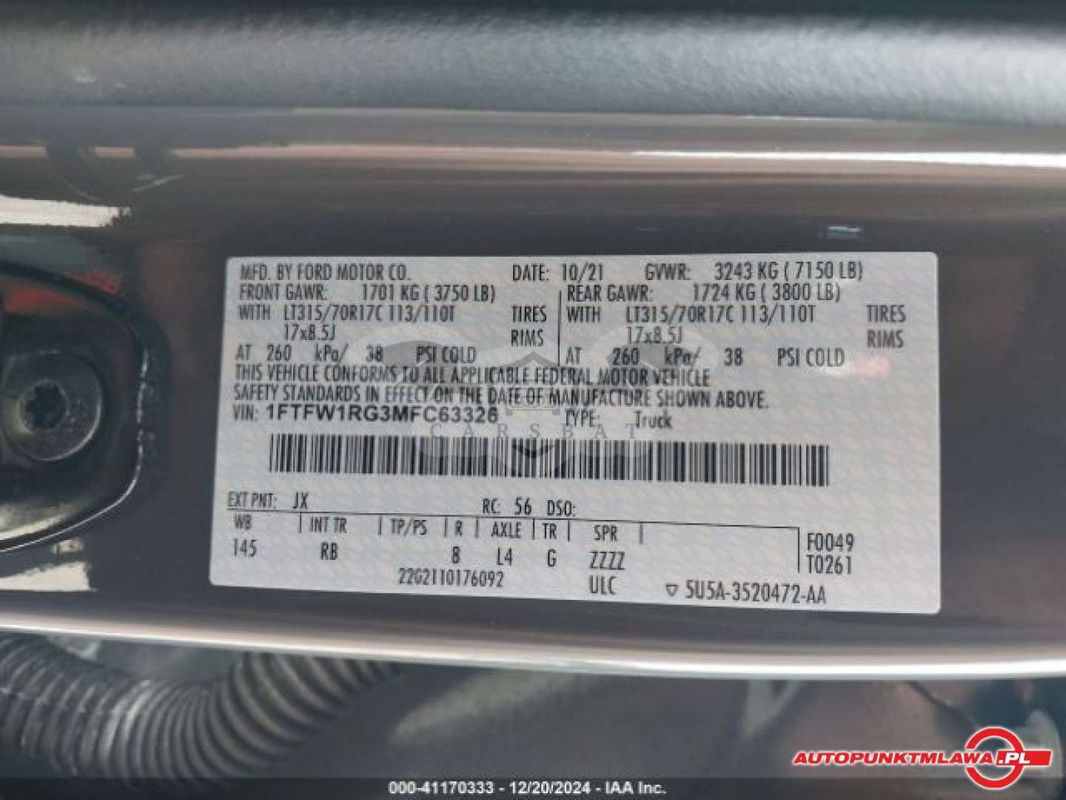 Auto Punkt Mława - Twój partner w motoryzacji od 20 lat! Oszczędzaj nawet do 40% wartości auta porównywalnego w Polsce! Jeśli marzysz o posiadaniu luksusowego samochodu, który przyciągnie spojrzenia i dostarczy niezapomnianych wrażeń z jazdy, to jesteśmy tu, aby Ci pomóc. Oferowany pojazd: 2021 FORD F-150 RAPTOR Nr przedmiotu : i 41170333 Dlaczego warto wybrać Auto Punkt Mława: - Firma działająca nieprzerwanie od 20 lat! - Samochody z kompletem dokumentów uprawniającymi do rejestracji w Polsce - Możliwość zakupu uszkodzonych samochodów, jak na zdjęciach - Działamy na rynku od 2003 roku i mamy wielu zadowolonych klientów - Dostarczamy auta z każdego portu na terenie USA i Kanady: - Nowy Jork - Miami - New Jersey - Savanah - Chicago - Houston - Los Angeles - Honolulu - Pomagamy w formalnościach związanych z zakupem i rejestracją pojazdu w Polsce - Oferujemy tylko pojazdy z pewnych i autoryzowanych Firm Ubezpieczeniowych **Cena podana jest ceną proponowanego zakupu w USA na aukcji ubezpieczeniowej. Jeśli potrzebujesz profesjonalnej naprawy pojazdu, również możemy Ci pomóc. Jeżeli kolor, uszkodzenia, czy przebieg nie spełniają Twoich oczekiwań, daj nam znać - znajdziemy dla Ciebie inny egzemplarz w równie atrakcyjnej cenie. Chcesz się spotkać i zobaczyć nas na żywo? Zapraszamy do biura w Mławie na Ul. Nowowiejska 25 w godzinach 9-17. Prosimy o wcześniejszy kontakt telefoniczny w celu ustalenia godziny spotkania. Dostępni jesteśmy pod numerami telefonów: Alan: Andżelo: Dżej: Grzegorz: Jarosław: Biuro: 23 654 25 47 Sprawdź nasze social media FB: AutoPunktMlawa / Instagram autopunktmlawa_pl / Tiktok autopunktmlawa --- MOŻLIWOŚĆ WSPÓŁPRACY --- CHCESZ ZOSTAĆ IMPORTEREM AUT Z USA I KANADY ? Czy prowadzisz warsztat, komis, czy po prostu szukasz nowej, ekscytującej działalności lub dodatkowego źródła dochodu? Oferujemy niezwykle korzystne warunki współpracy oraz bezpłatne szkolenia dotyczące importu pojazdów z USA i Kanady. Zapraszamy do kontaktu już dziś, aby omówić szczegóły.Dajemy Ci szansę na rozszerzenie działalności i zdobycie nowych umiejętności. Zadzwoń i umów się na spotkanie, abyśmy mogli przedstawić Ci wszystkie możliwości już teraz! *Niniejsze ogłoszenie ma charakter informacyjny i nie stanowi oferty w rozumieniu art. 66, § 1. Kodeksu Cywilnego. Sprzedający nie ponosi odpowiedzialności za ewentualne błędy lub nieaktualność ogłoszenia.* 44FOX-ID: 942