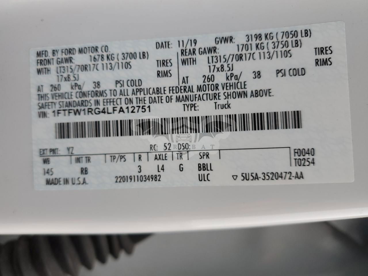 • VIN: 1FTFW1RG4LFA12751