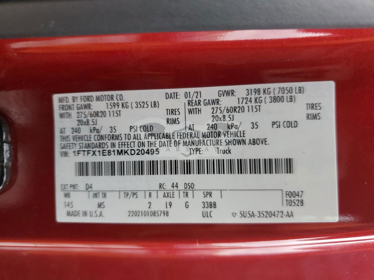 • VIN: 1FTFX1E81MKD20495