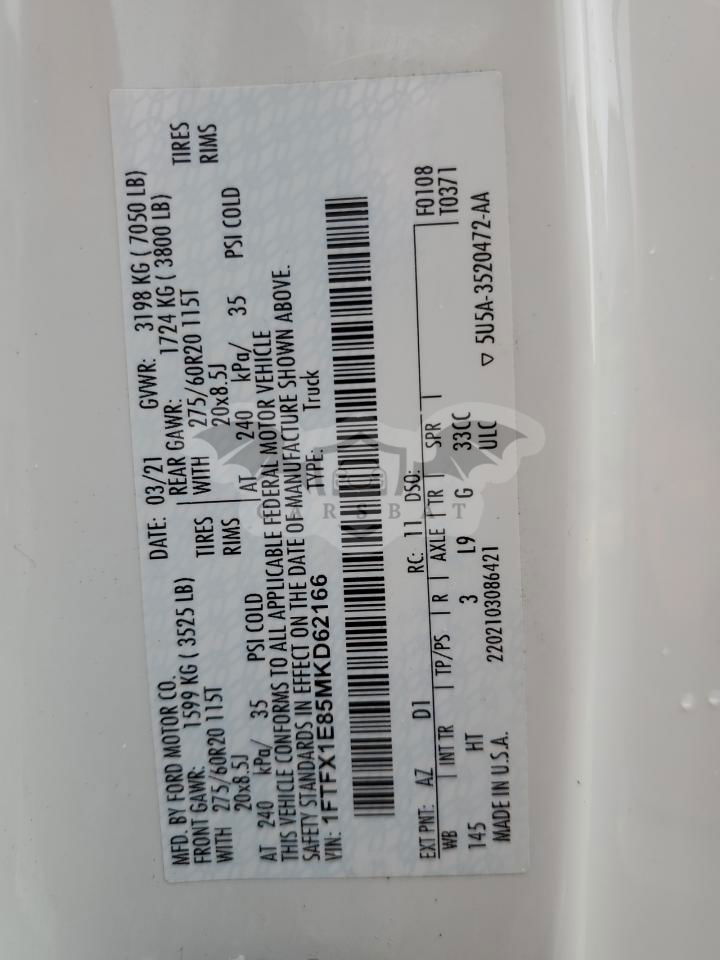 • VIN: 1FTFX1E85MKD62166