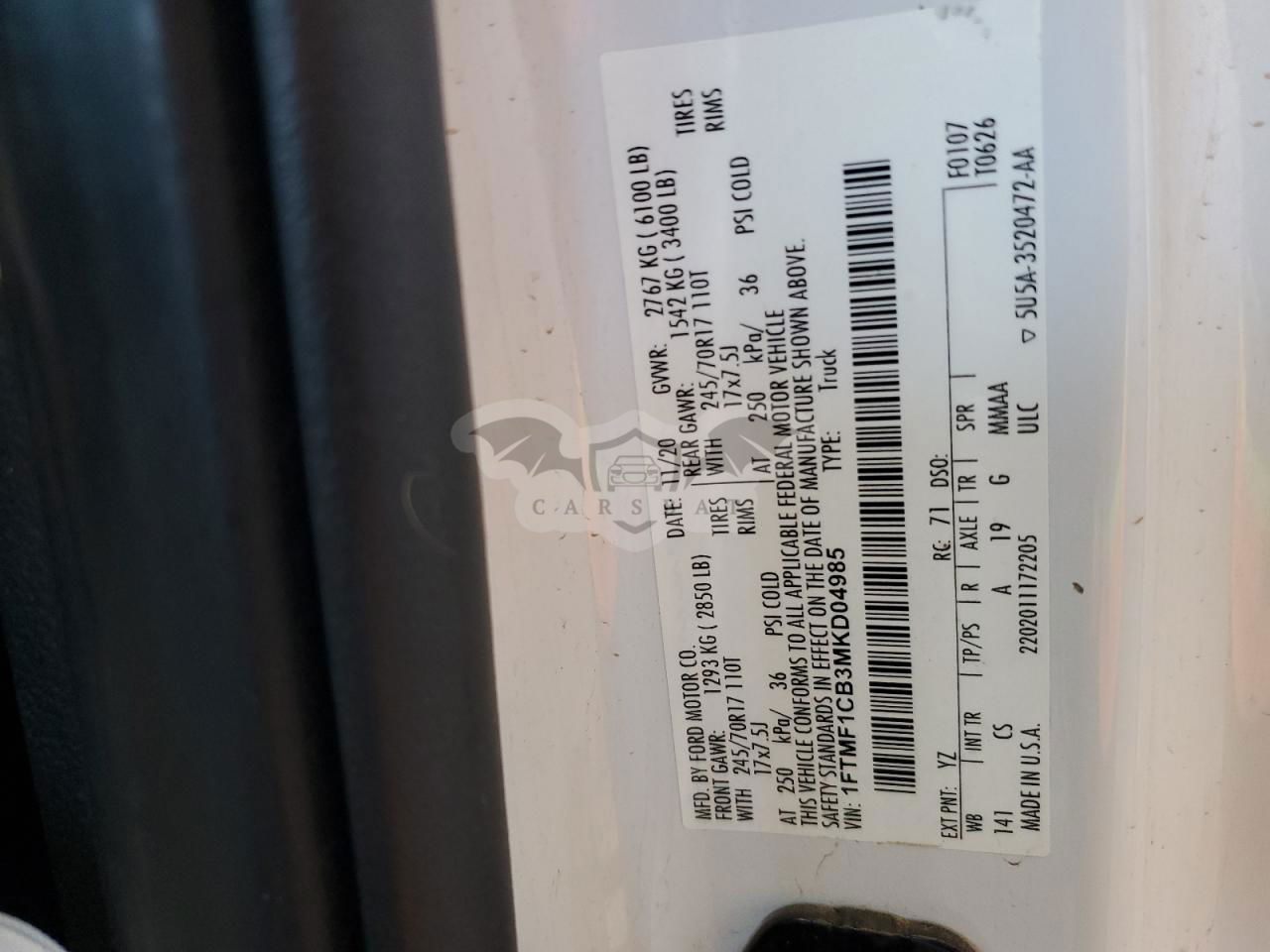 • VIN: 1FTMF1CB3MKD04985