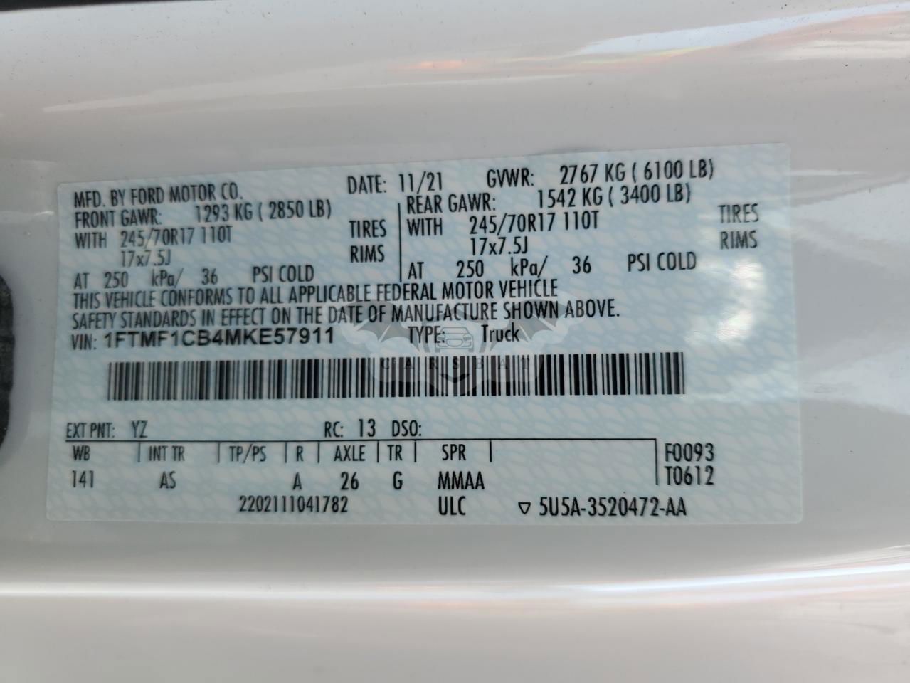 • VIN: 1FTMF1CB4MKE57911
