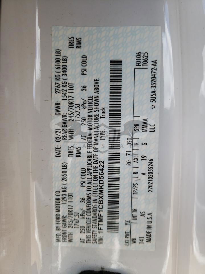 • VIN: 1FTMF1CBXMKD56422