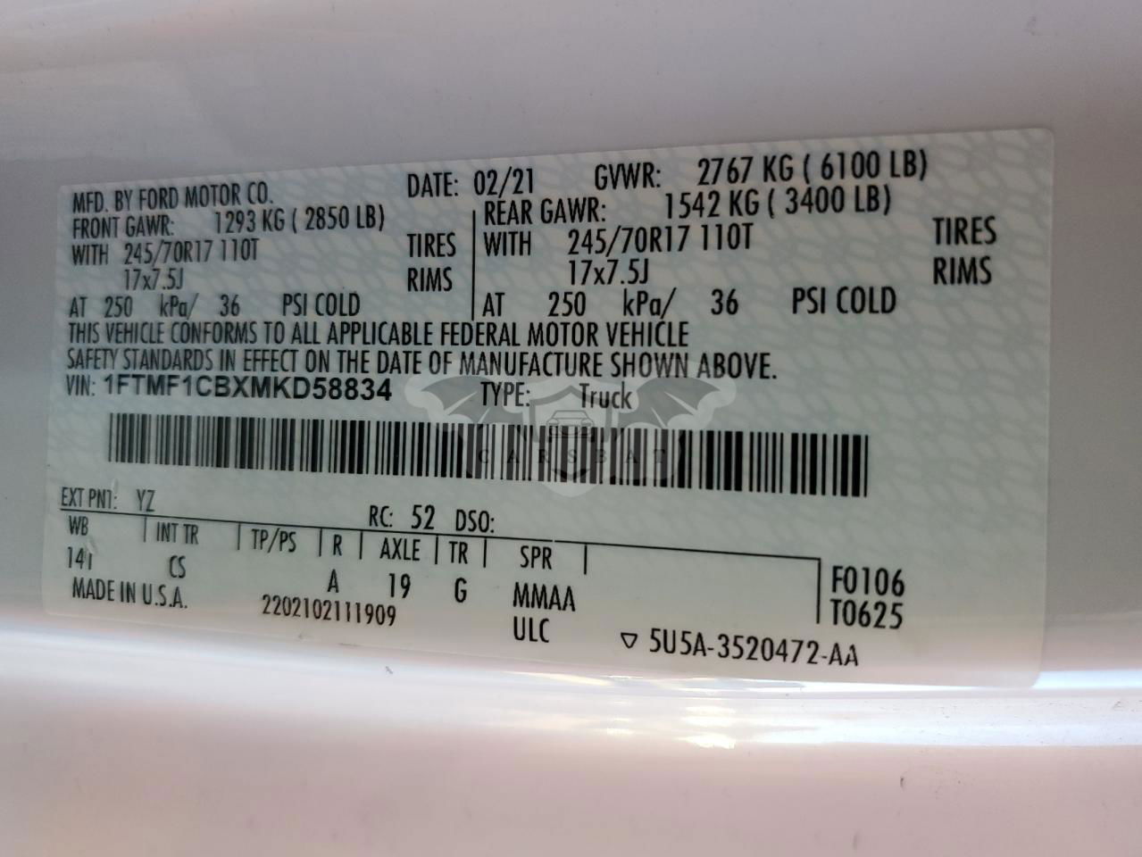 • VIN: 1FTMF1CBXMKD58834