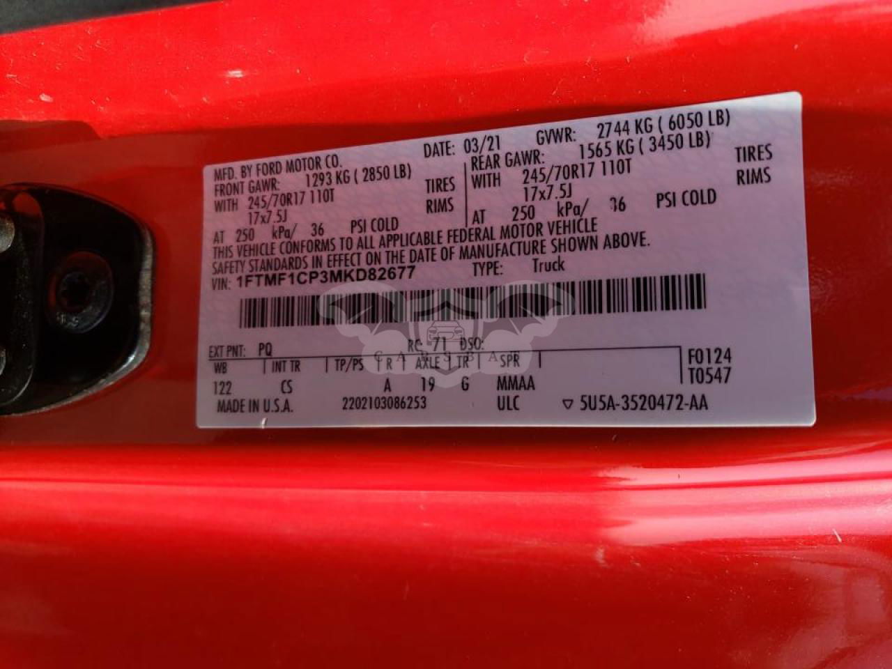 • VIN: 1FTMF1CP3MKD82677