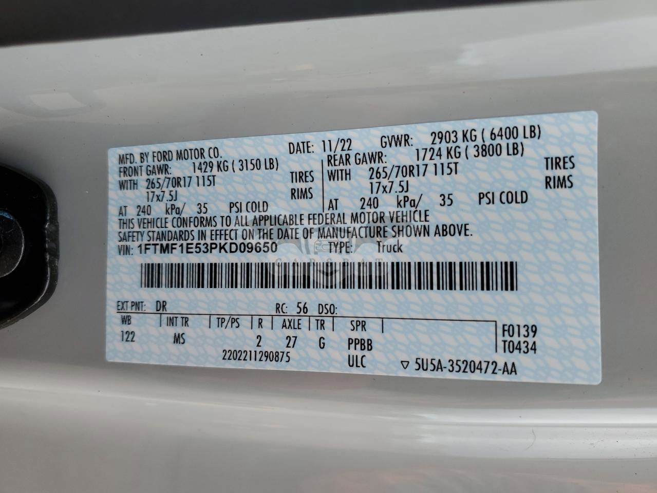 • VIN: 1FTMF1E53PKD09650