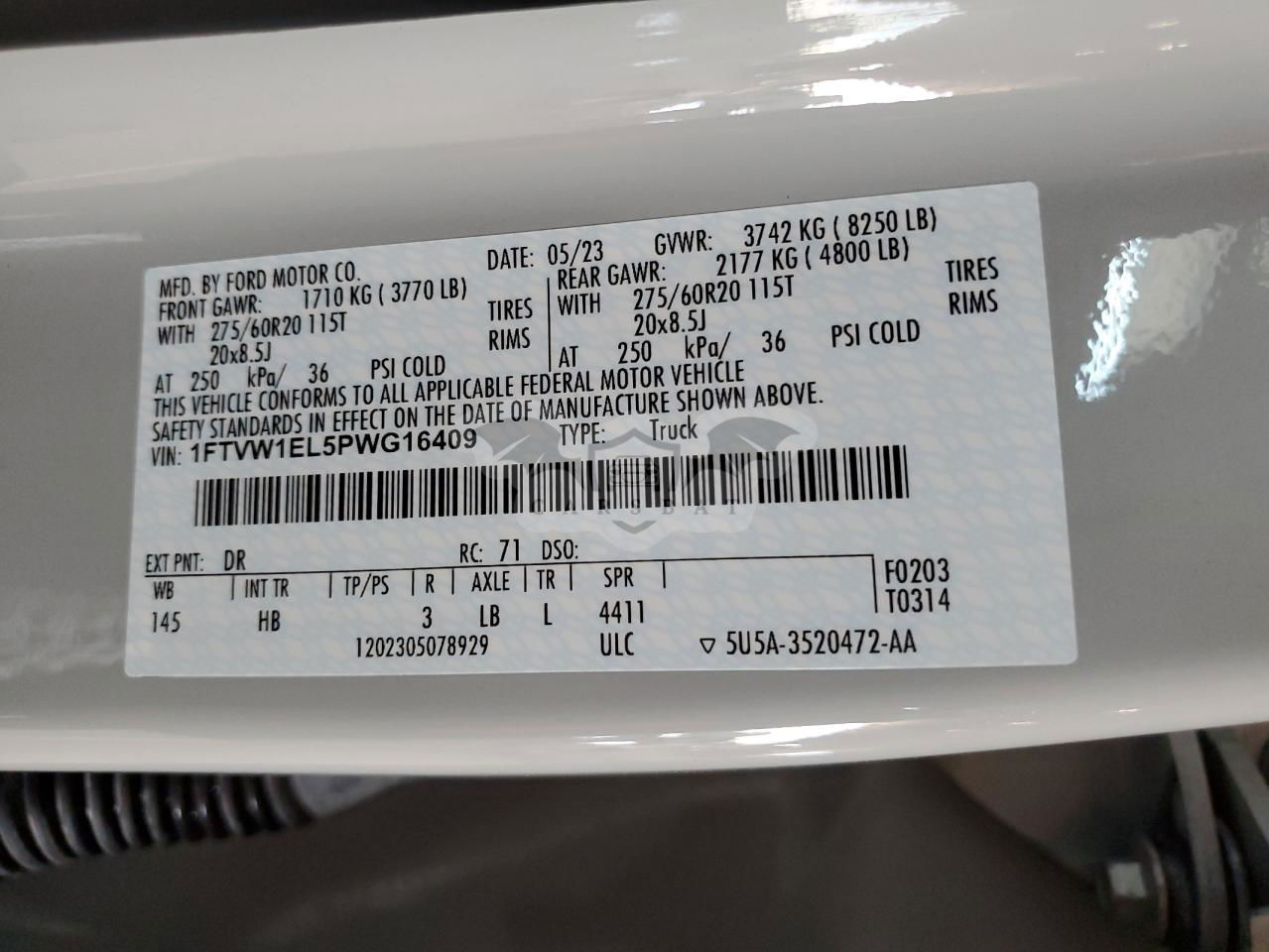 • VIN: 1FTVW1EL5PWG16409