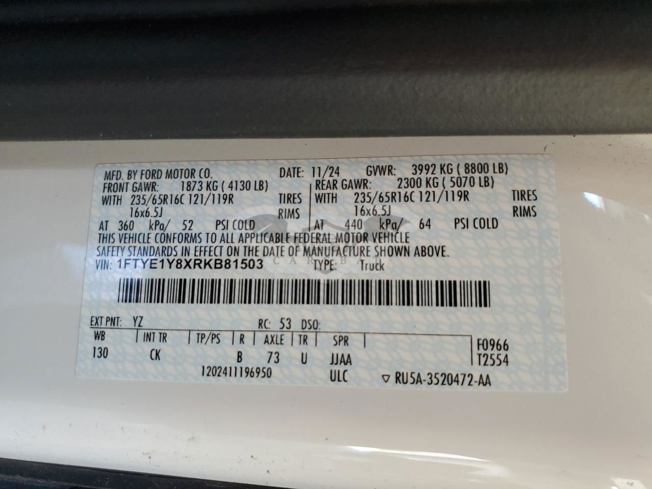 • VIN: 1FTYE1Y8XRKB81503
