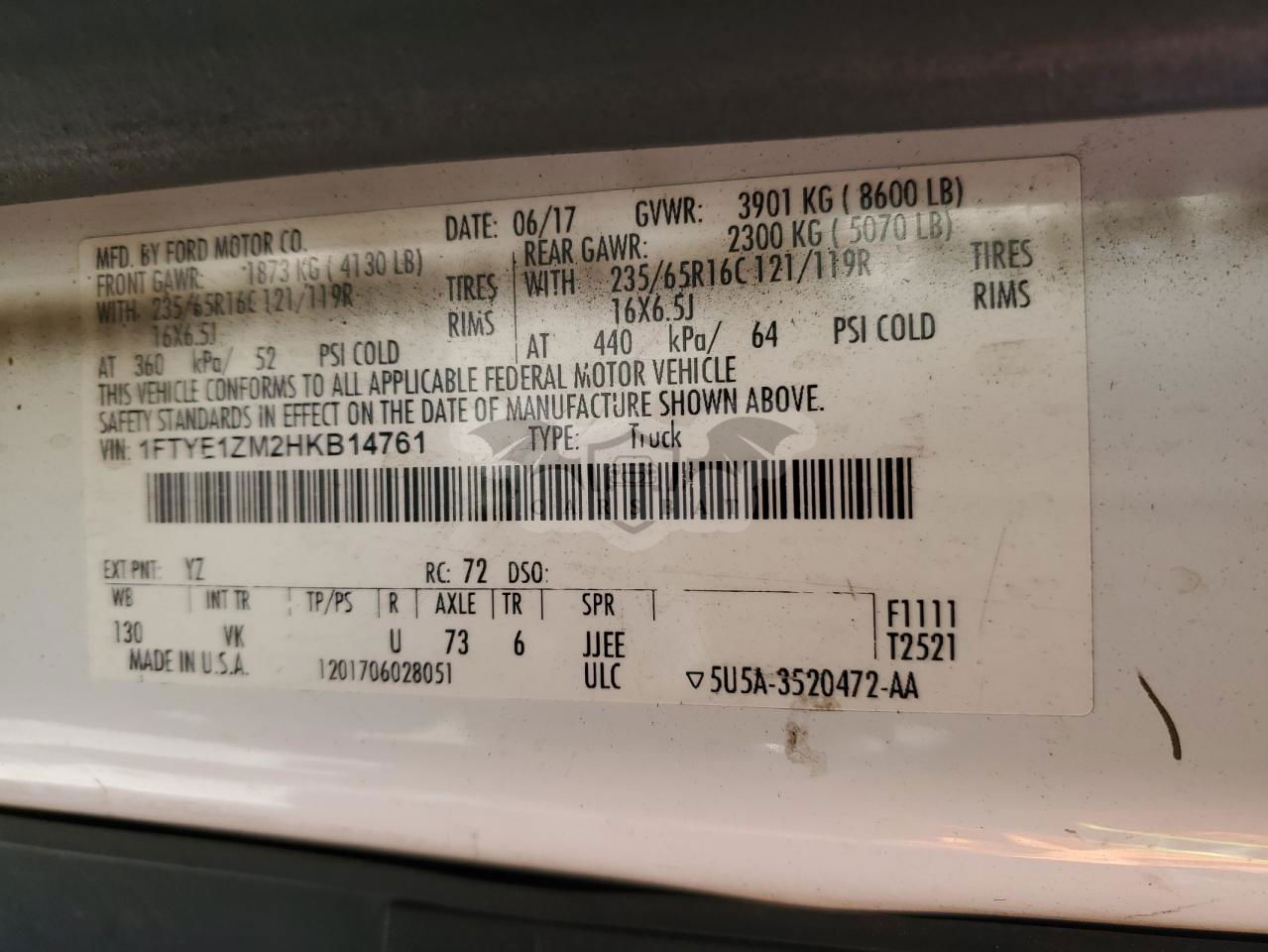 • VIN: 1FTYE1ZM2HKB14761