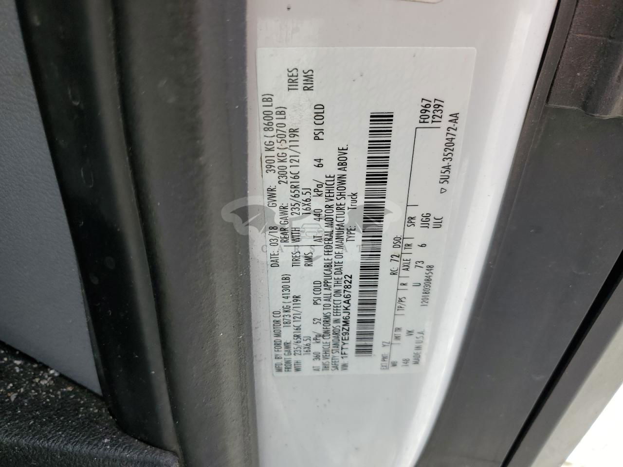 • VIN: 1FTYE9ZM6JKA67822