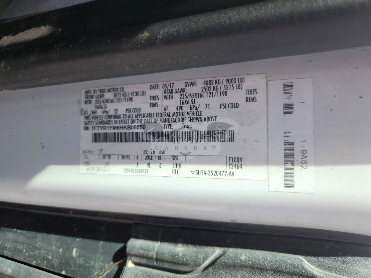 • VIN: 1FTYR1YM6HKB08550
