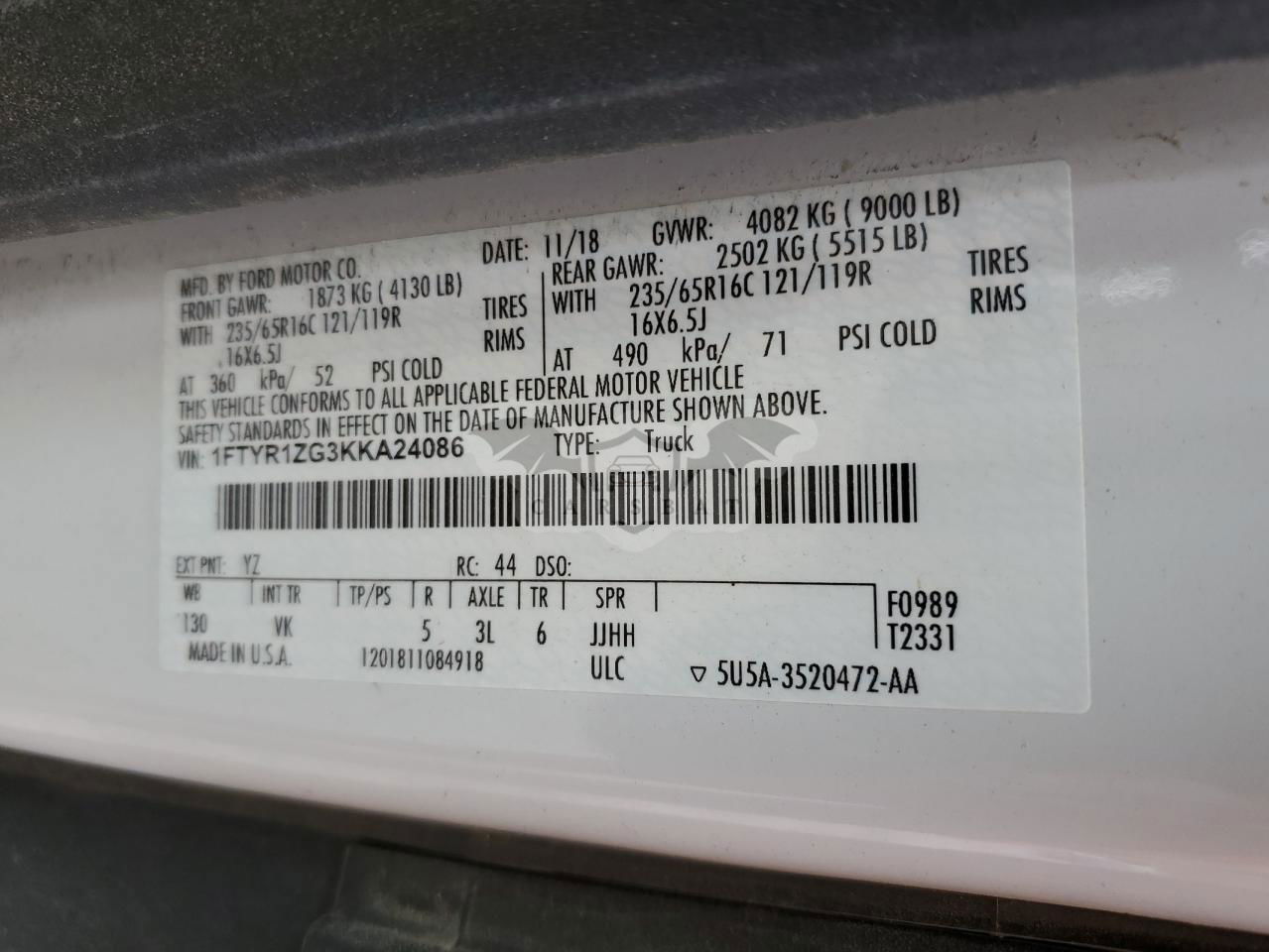 • VIN: 1FTYR1ZG3KKA24086