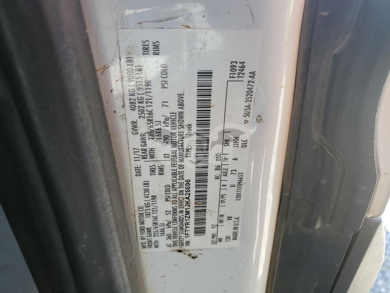 • VIN: 1FTYR1ZM1JKA26696