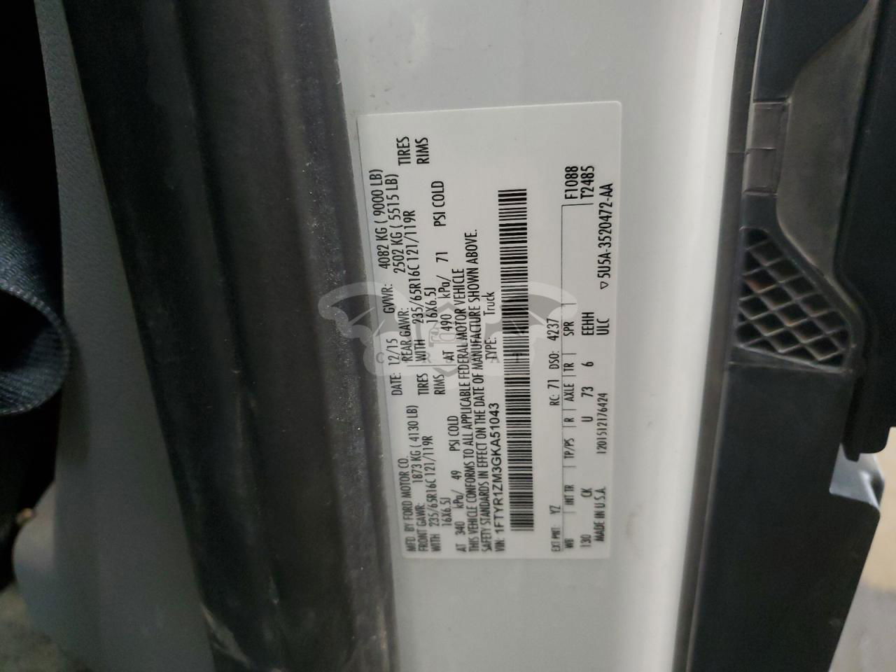 • VIN: 1FTYR1ZM3GKA51043