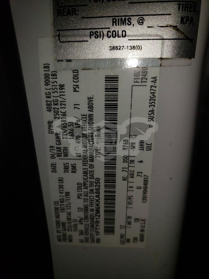 • VIN: 1FTYR1ZM6KKA86250