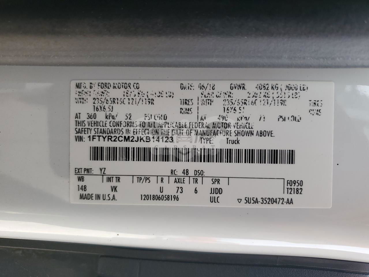 • VIN: 1FTYR2CM2JKB14123