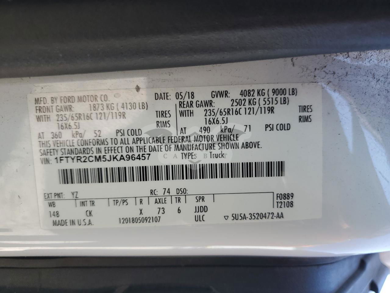 • VIN: 1FTYR2CM5JKA96457