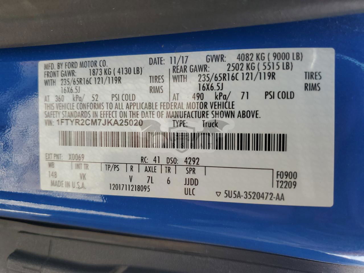 • VIN: 1FTYR2CM7JKA25020