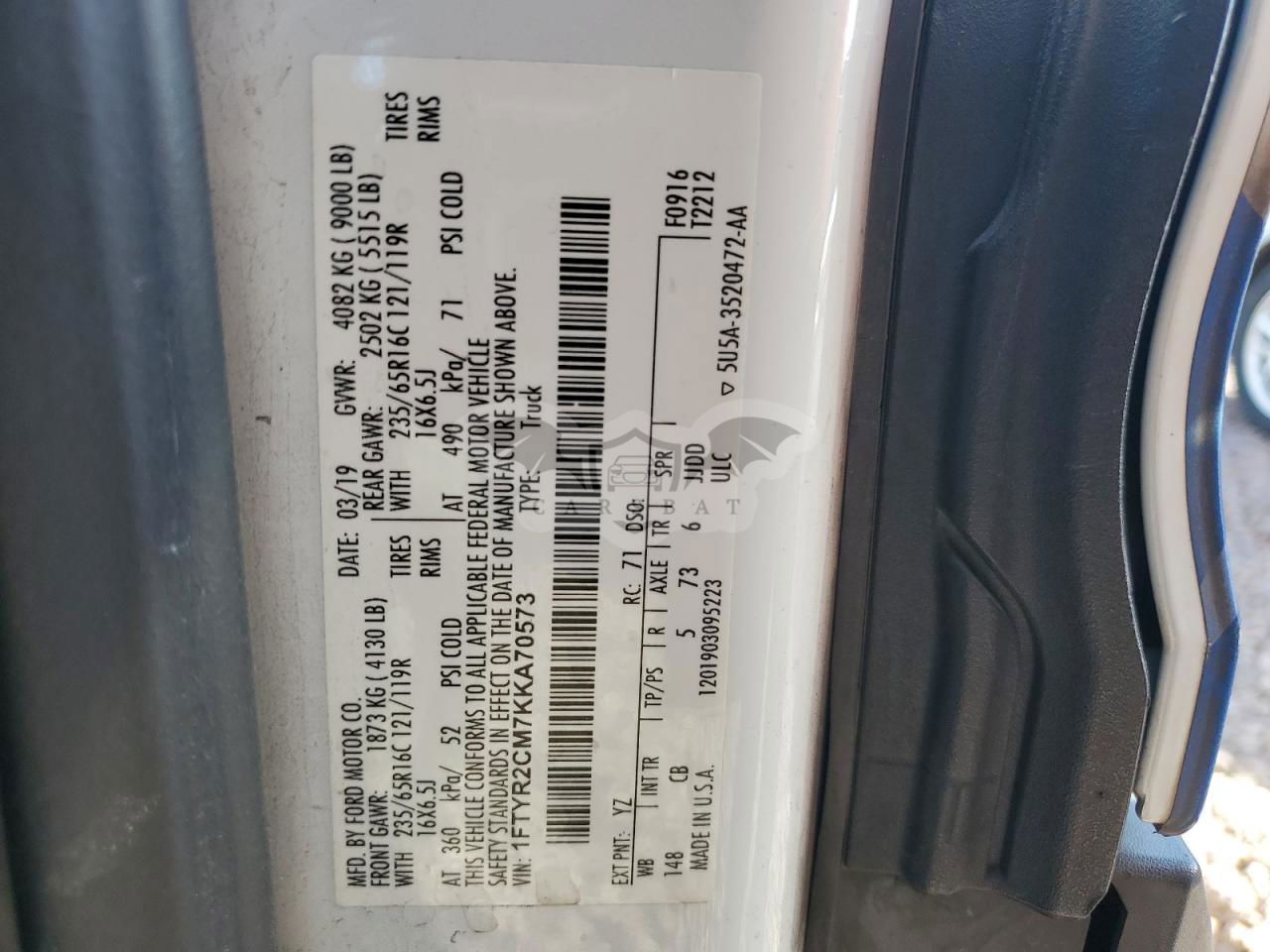 • VIN: 1FTYR2CM7KKA70573
