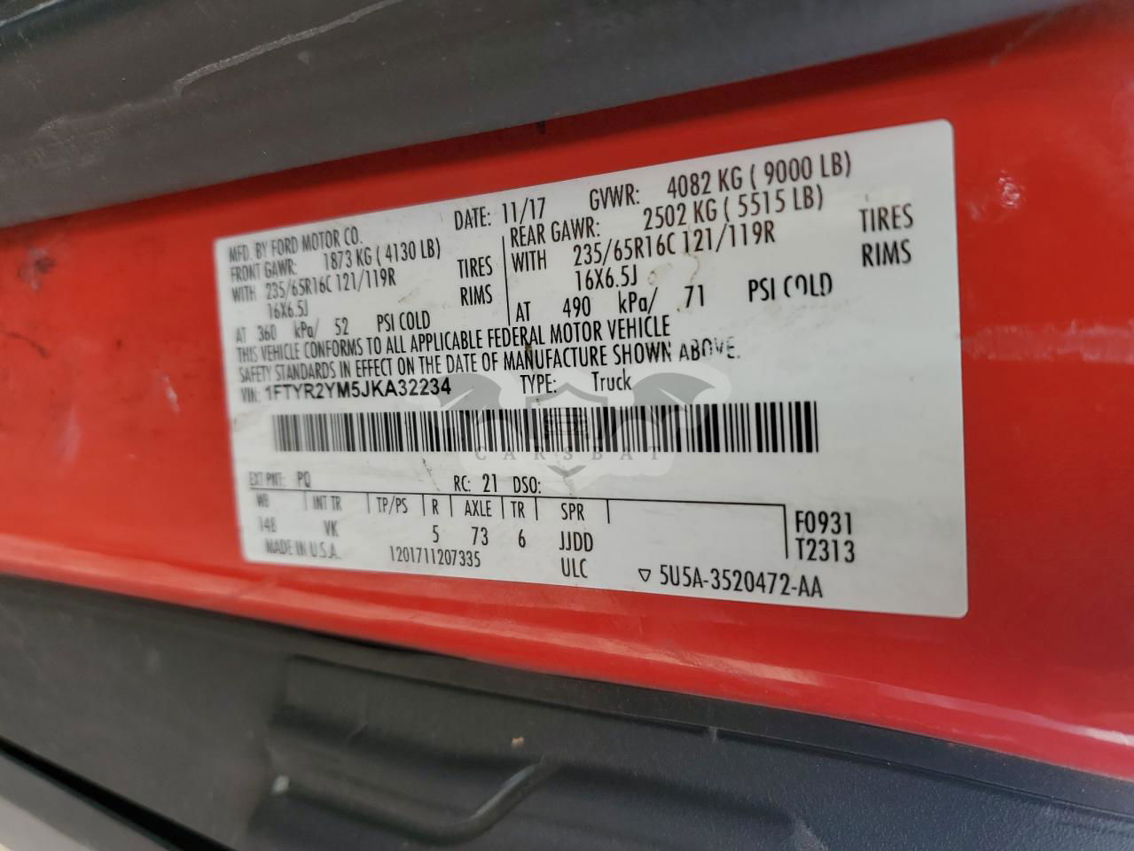 • VIN: 1FTYR2YM5JKA32234