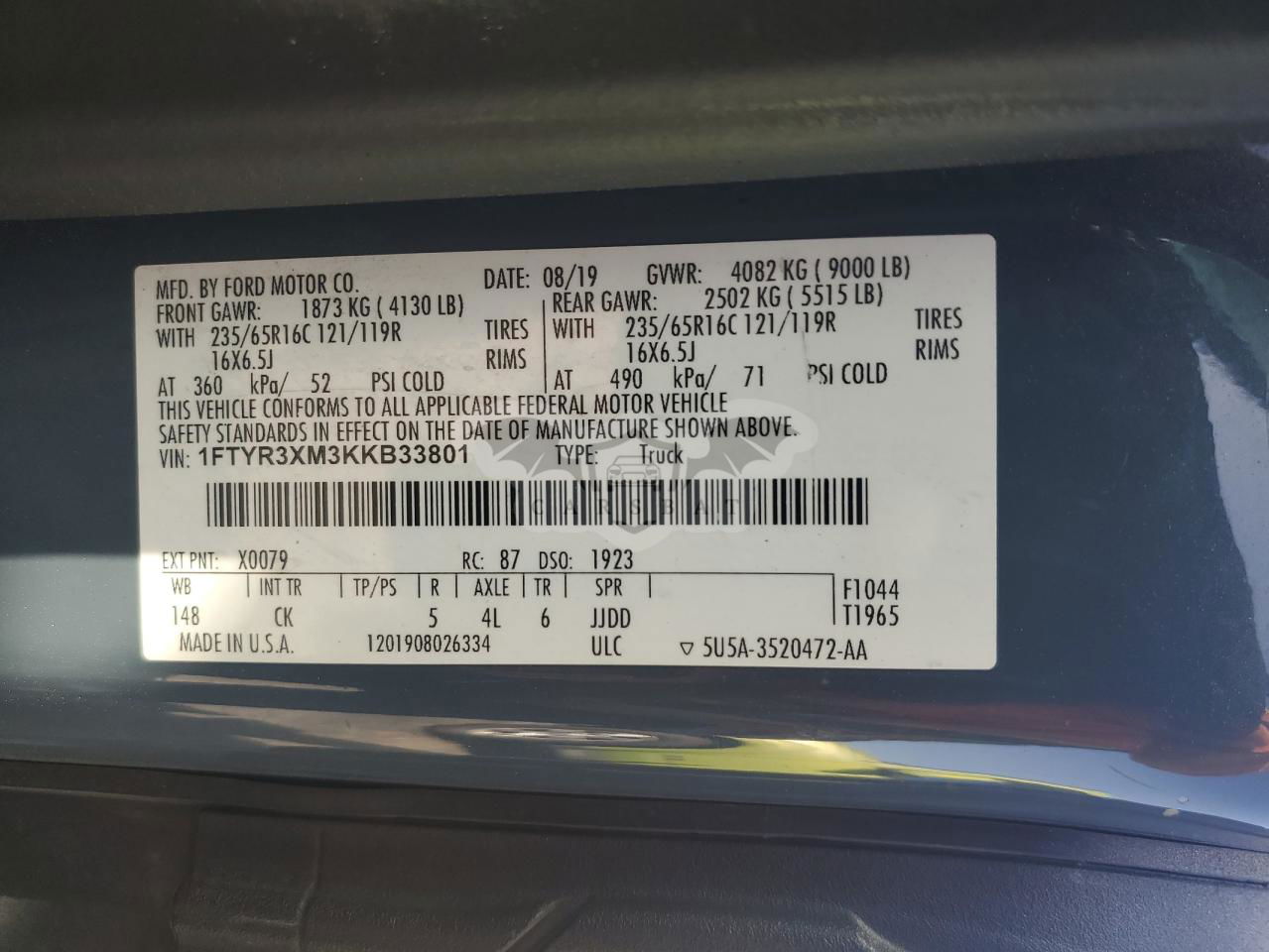 • VIN: 1FTYR3XM3KKB33801