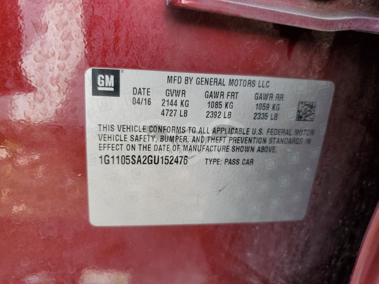 • VIN: 1G1105SA2GU152476