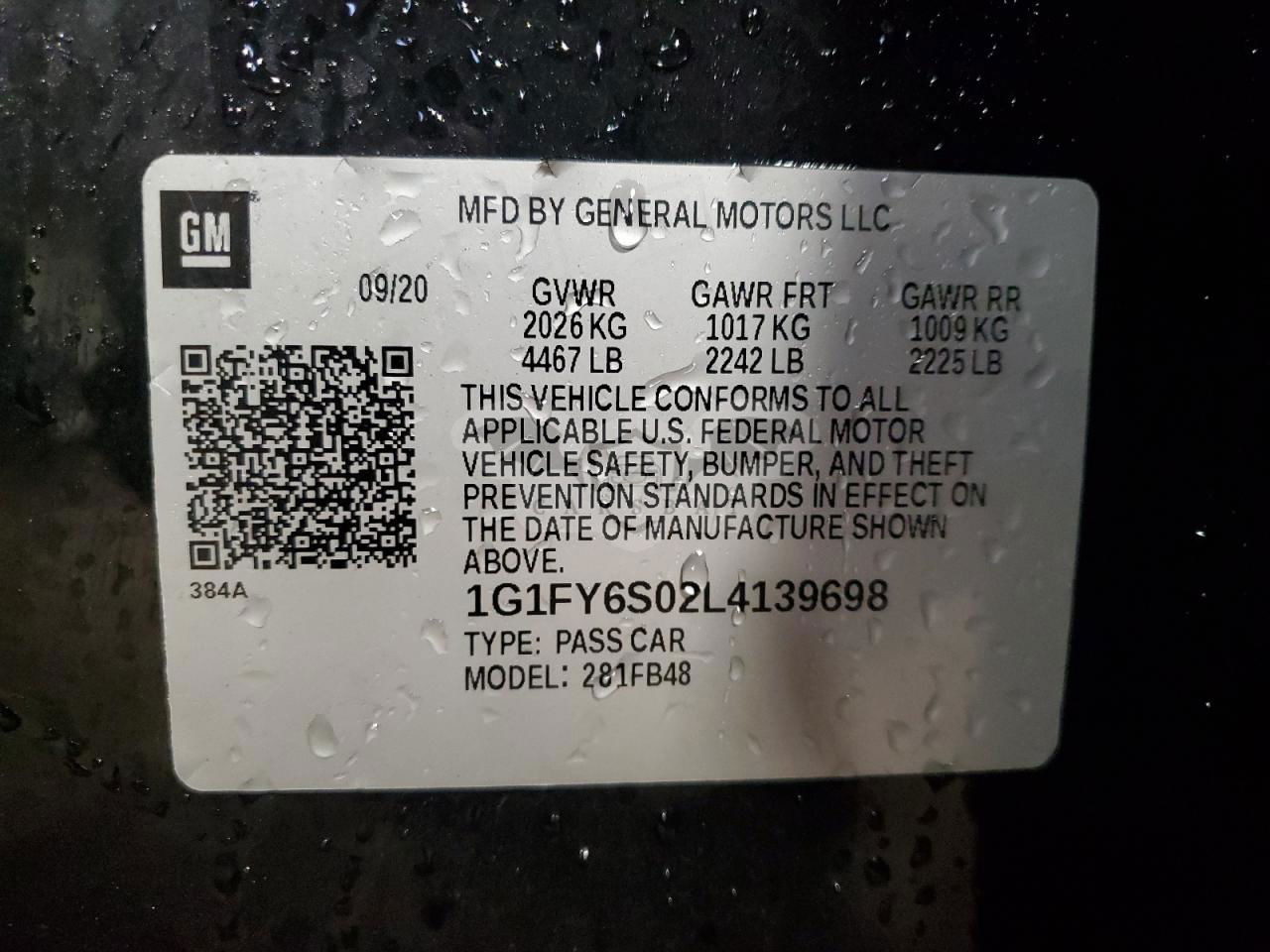 • VIN: 1G1FY6S02L4139698