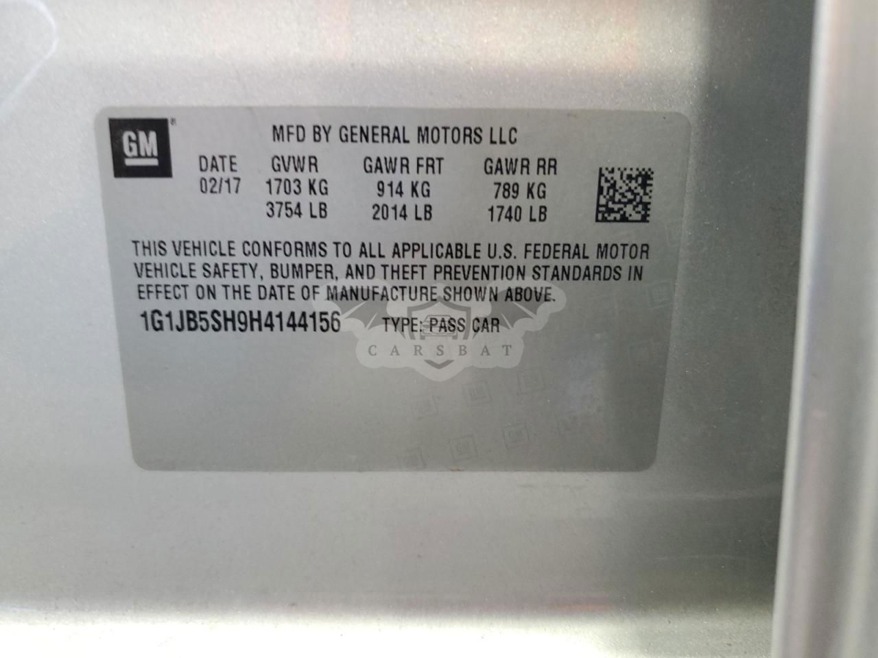 • VIN: 1G1JB5SH9H4144156