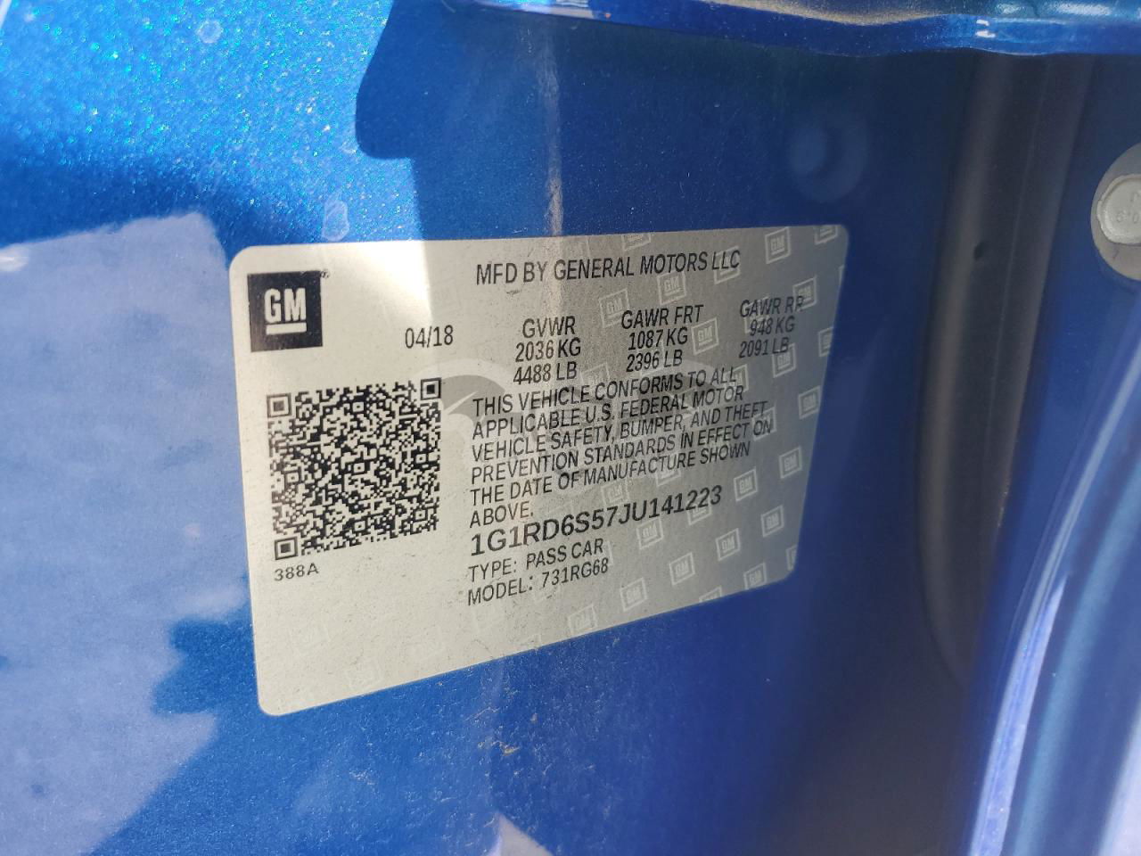 • VIN: 1G1RD6S57JU141223