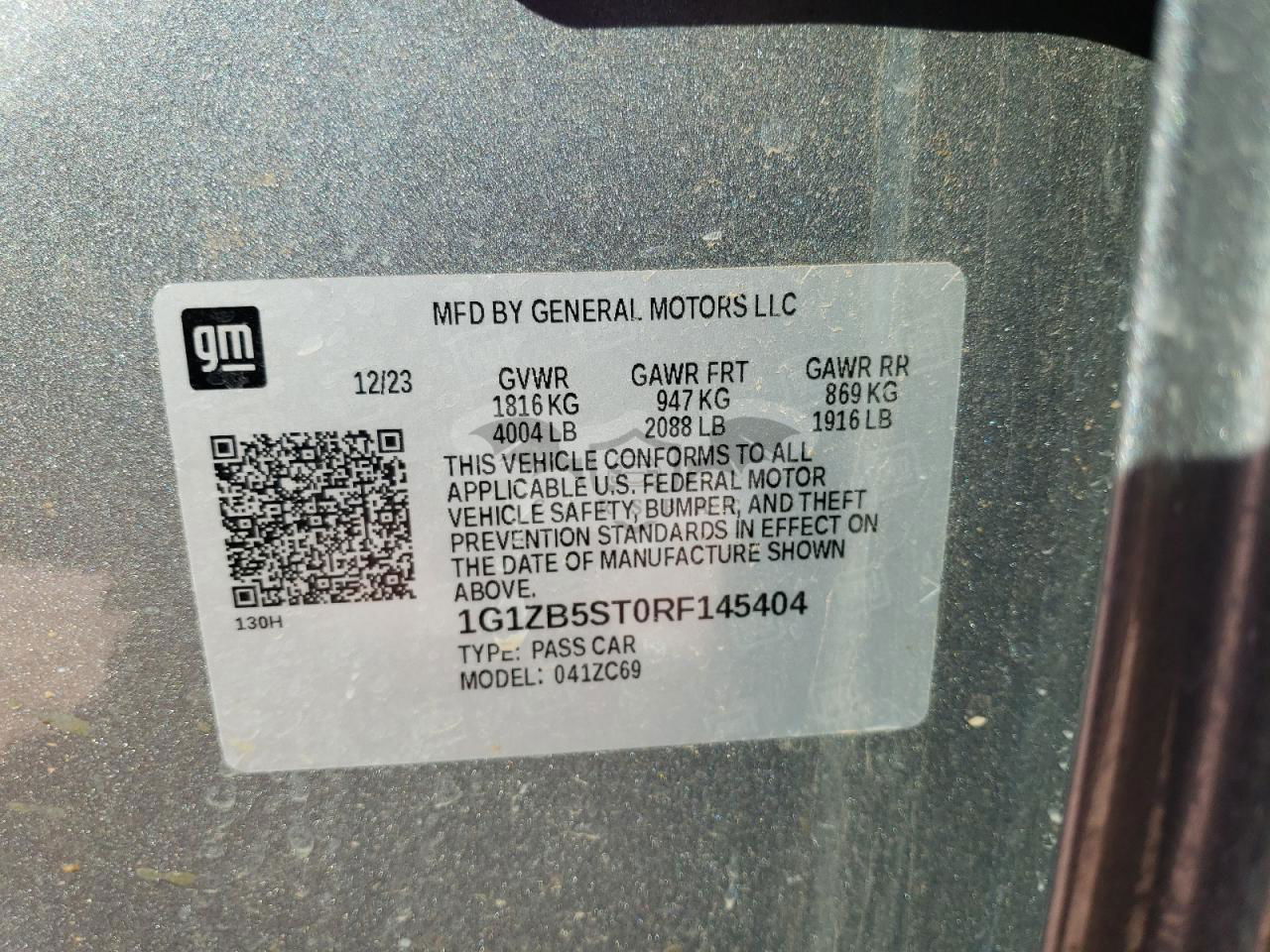 • VIN: 1G1ZB5ST0RF145404