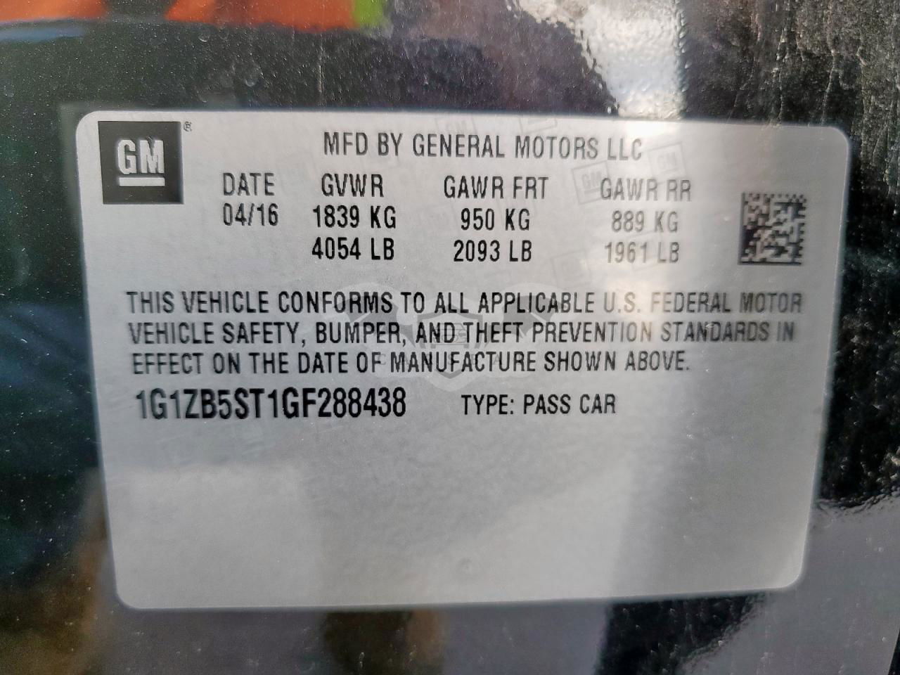• VIN: 1G1ZB5ST1GF288438