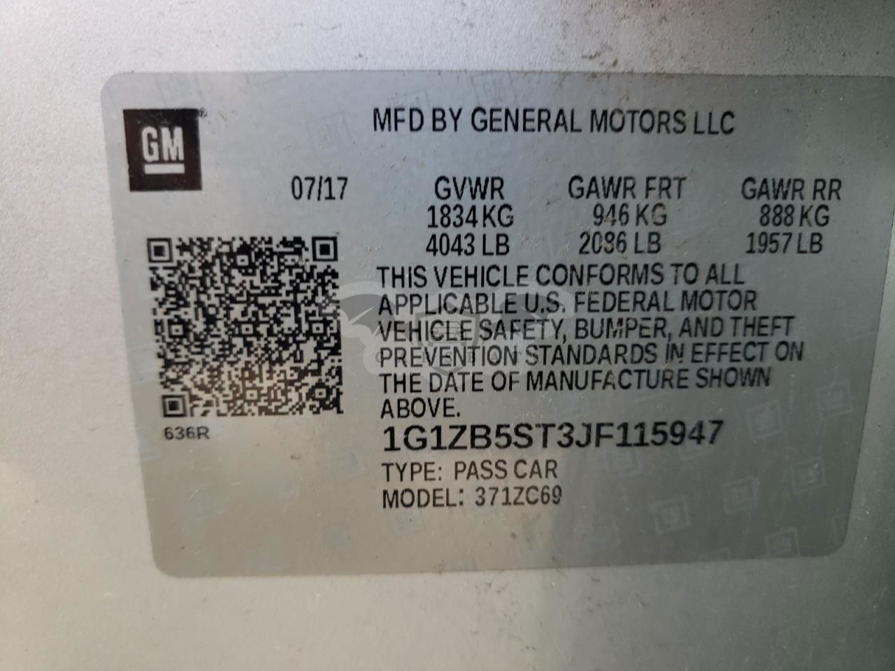• VIN: 1G1ZB5ST3JF115947