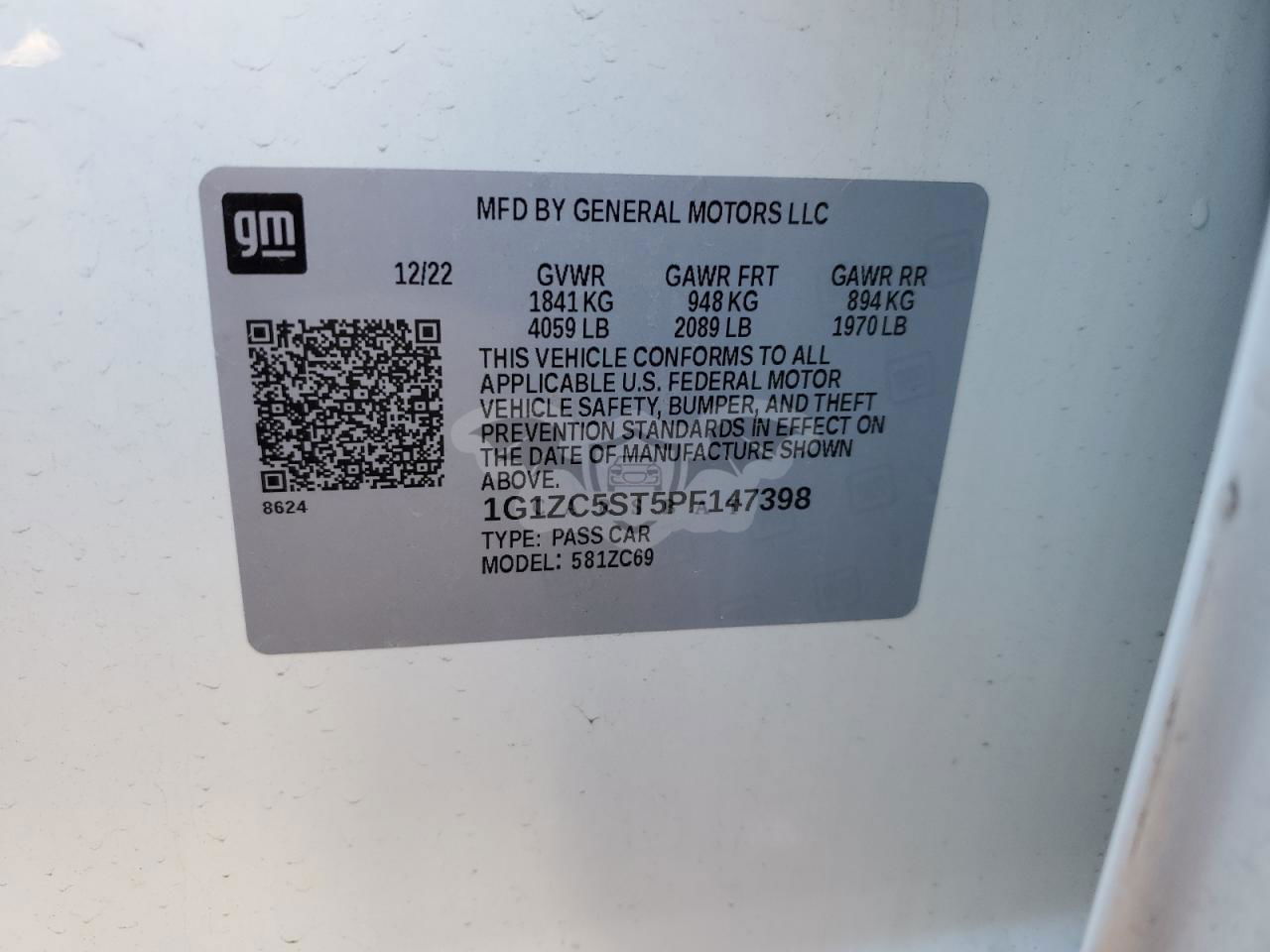 • VIN: 1G1ZC5ST5PF147398
