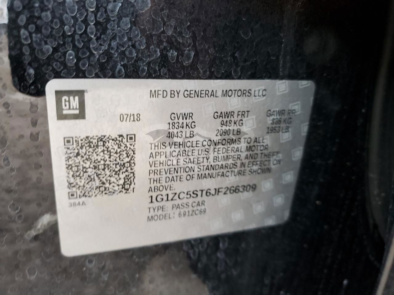 • VIN: 1G1ZC5ST6JF266309