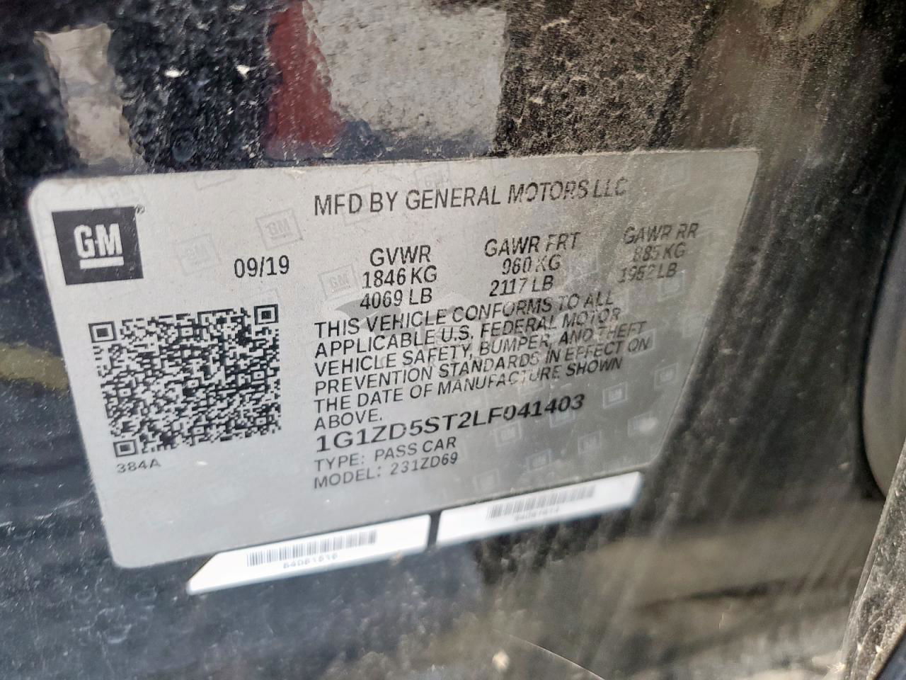 • VIN: 1G1ZD5ST2LF041403
