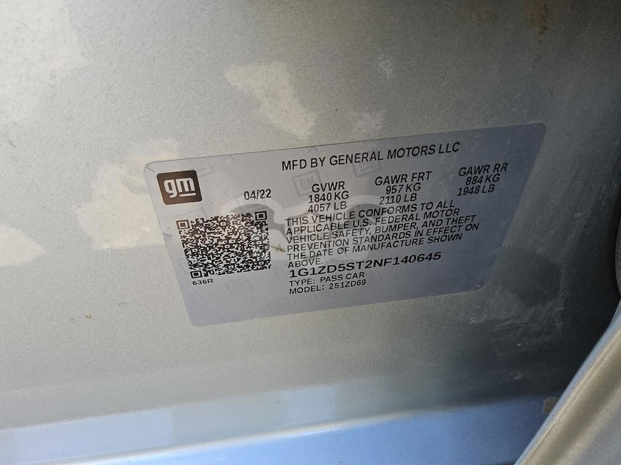 • VIN: 1G1ZD5ST2NF140645