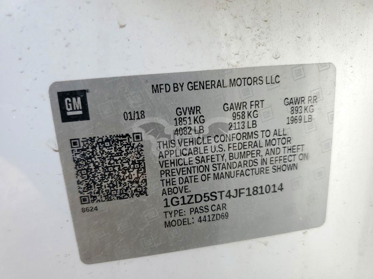 • VIN: 1G1ZD5ST4JF181014