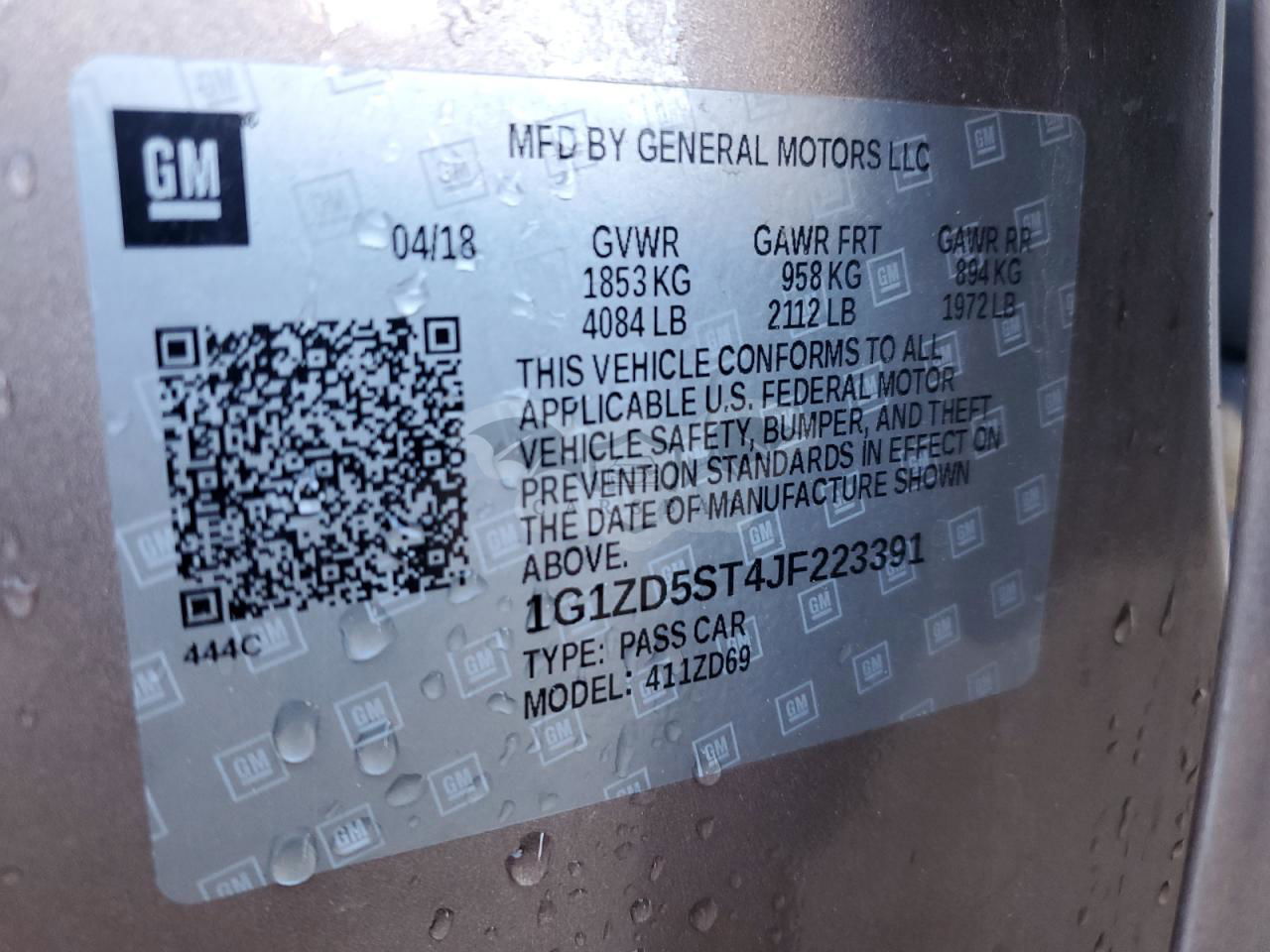 • VIN: 1G1ZD5ST4JF223391