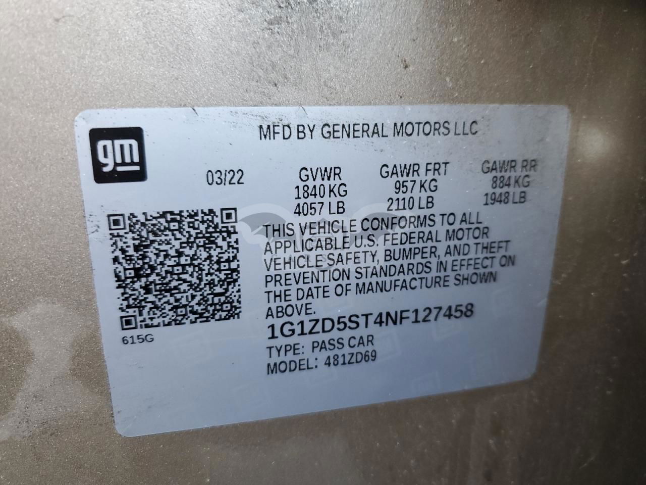 • VIN: 1G1ZD5ST4NF127458