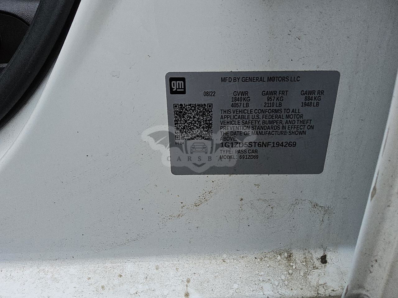 • VIN: 1G1ZD5ST6NF194269