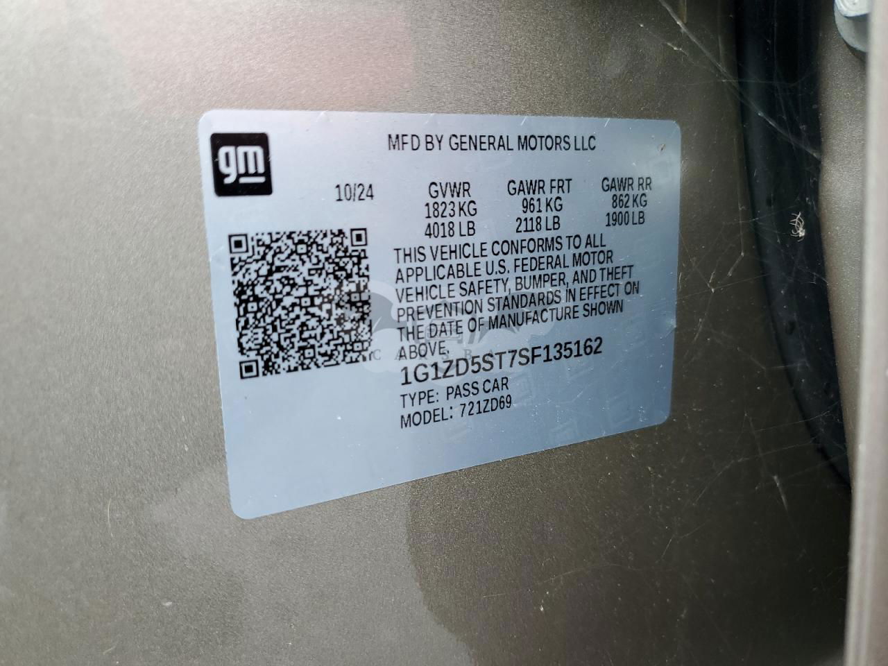 • VIN: 1G1ZD5ST7SF135162
