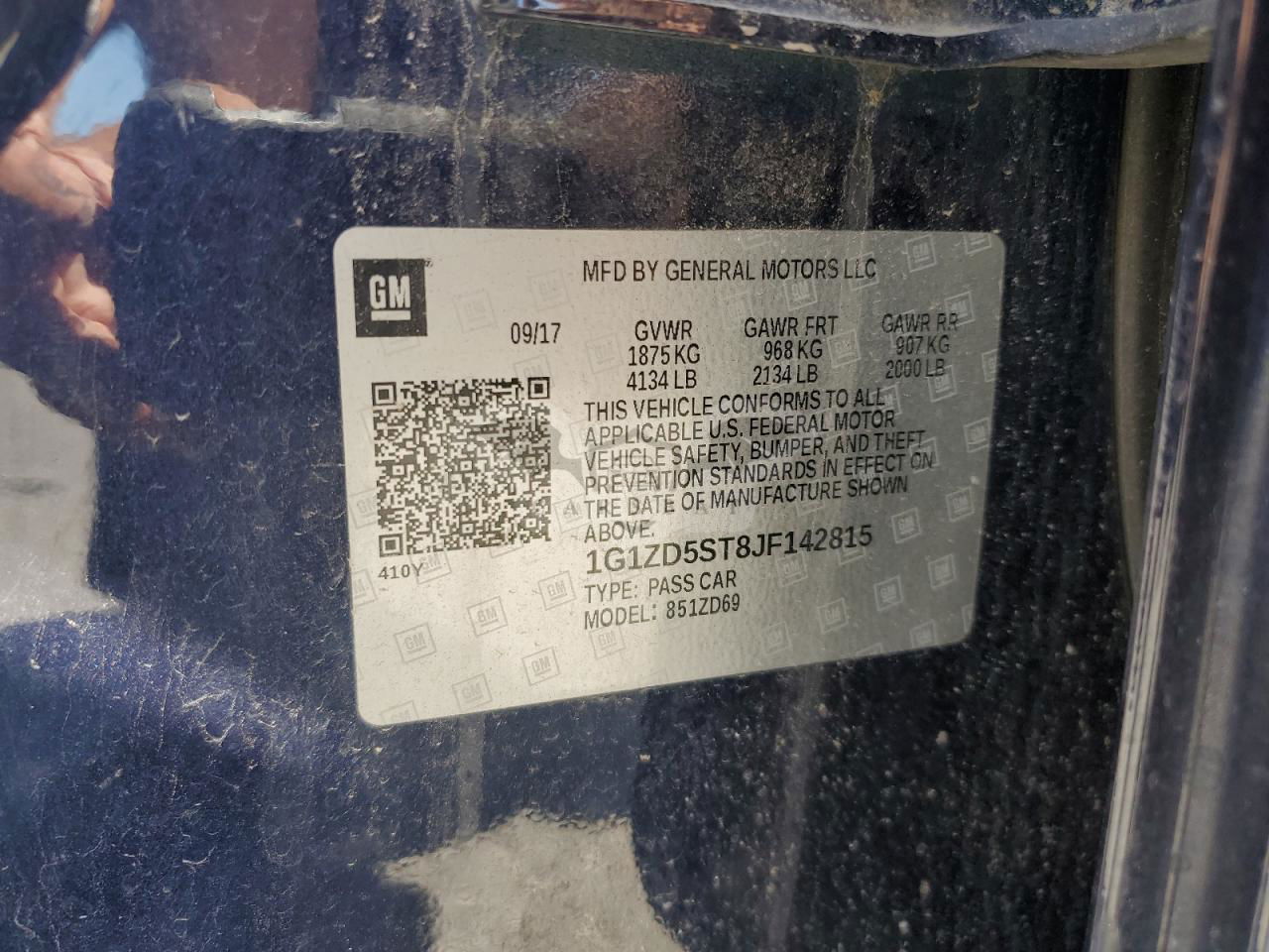 • VIN: 1G1ZD5ST8JF142815