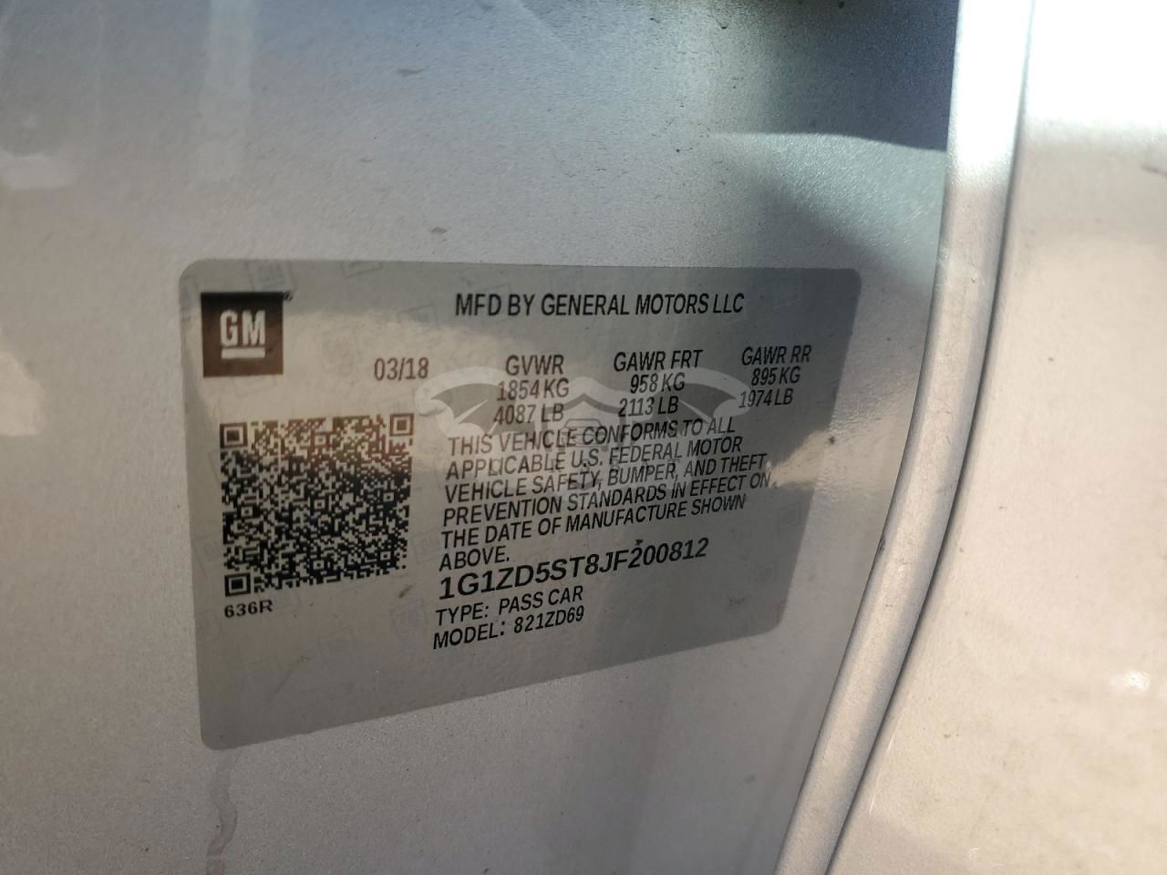 • VIN: 1G1ZD5ST8JF200812